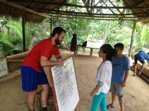 A few years ago a well educated bilingual young local was introduced to our program and wanted to help in his spare time. We later found students and volunteers where interested in learning about his profession tree climbing and what a better place to learn than here in the Jungle ! We are investing in this additional 6th Component as we much as we financial can.
