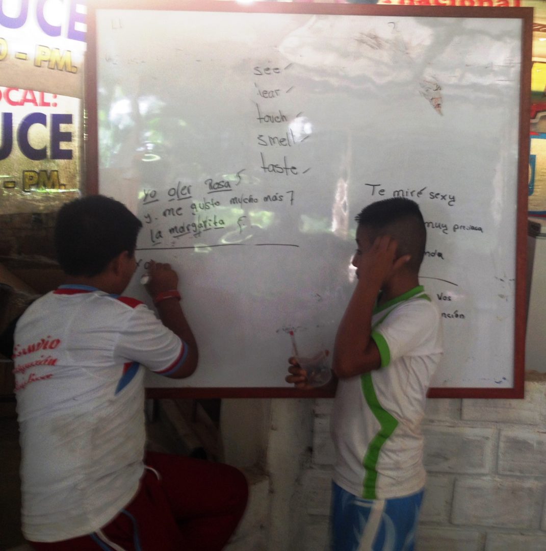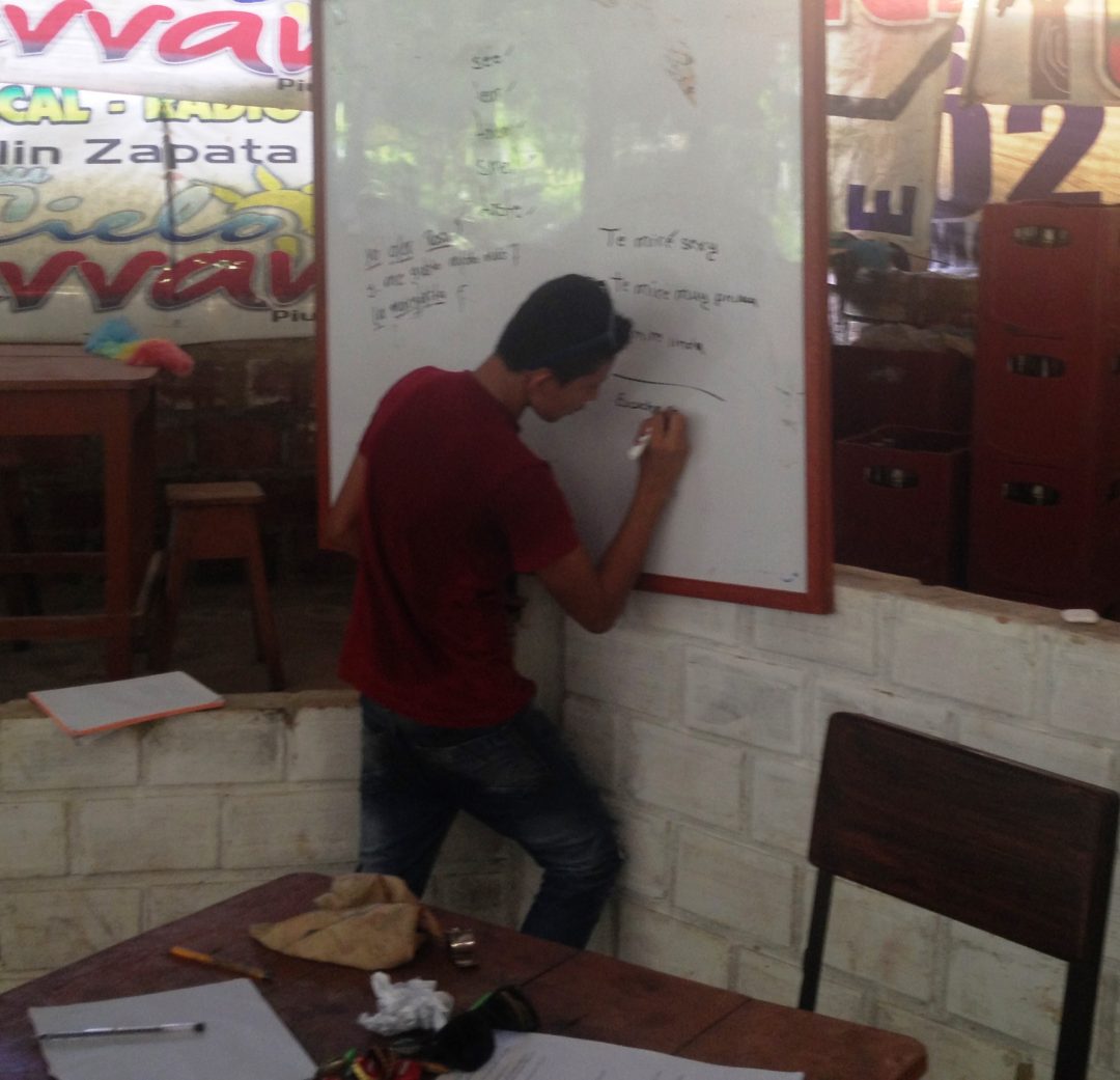 Why is poetry a main component of our program?  Because poetry not only ties  English, Spanish, and the wide variety of other volunteer’s primary languages together it also connects all the components of our program together by using them as poetry topics.  Poetry is the main grading criterion for The Main Event held at the end of each Program cycle.